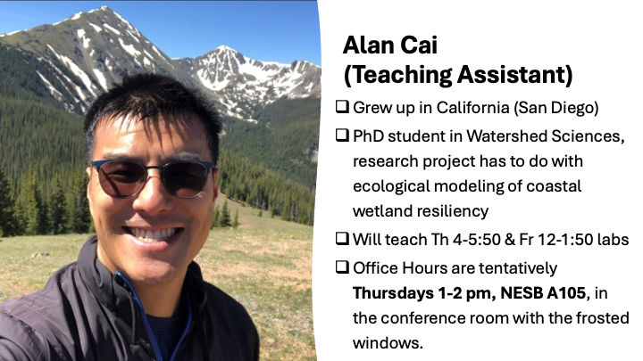 Jaque, Alan and I will do everything we can to help you along. If you stick with the course and do the work (particularly the daily assignments!), you will get a good grade, learn a lot, and be prepared to serve as a environmental data scientist in a quantitative capacity - OR - better communicate with those who are serving in that role