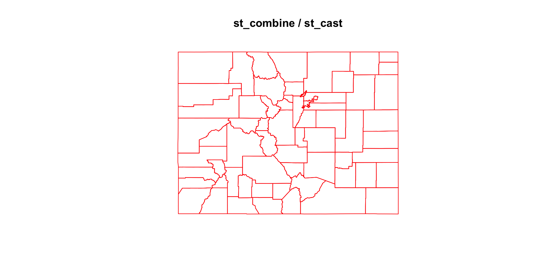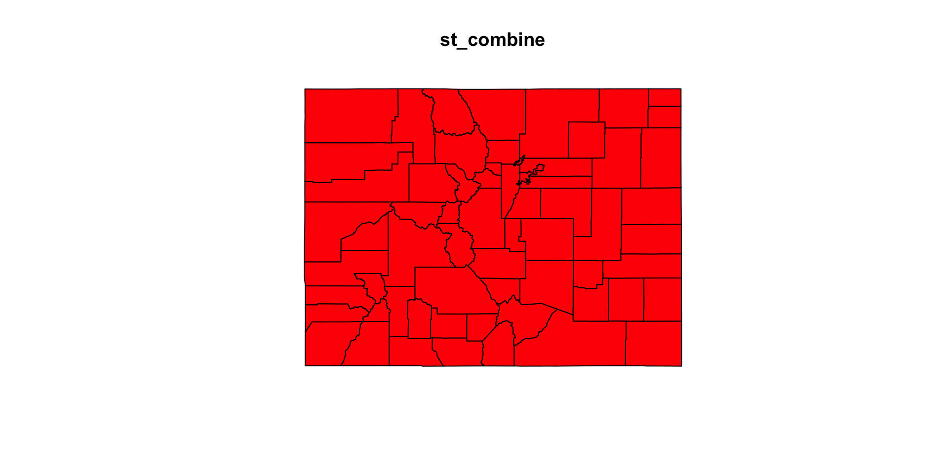 co <-st_read("data/co.shp")#> Reading layer `co' from data source #> `/Users/mikejohnson/github/csu-ess-330/slides/data/co.shp' #> using driver `ESRI Shapefile'#> Simple feature collection with 64 features and 4 fields#> Geometry type: MULTIPOLYGON#> Dimension: XY#> Bounding box: xmin: -109.0602 ymin: 36.99246 xmax: -102.0415 ymax: 41.00342#> Geodetic CRS: WGS 84a <-st_area(co[1,])attributes(a) |>unlist()#> units.numerator1 units.numerator2 class #> "m" "m" "units"